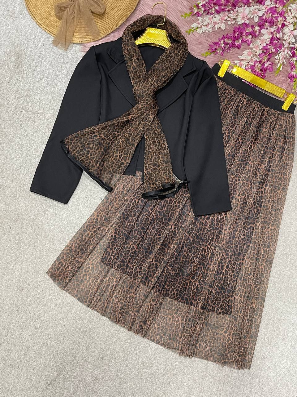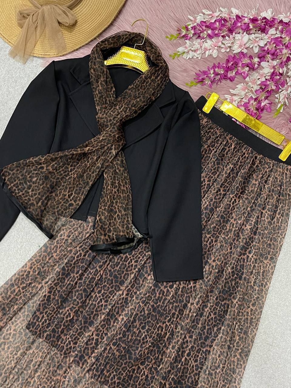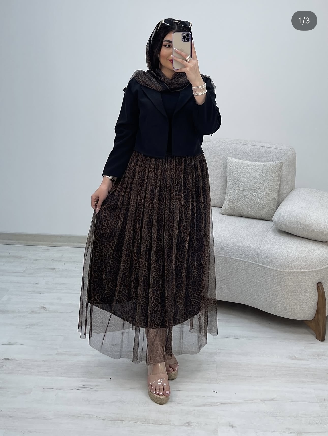 سه تیکه کت دامن شال پلنگی کت دامن و شال مدل توری با طرح پلنگی از مدلای شیک و جذابیه که خیلی ترند شده و استایلتو خاص و گرون نشون میده و برای مجالس و مهمونیا میتونی راحت ست کنی و دغدغه استایل کردن نداشته باشی .همچنین میتونی هر کدوم از آیتمای کت دامن و شال و جدا استایل کنی.